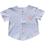 Chicago Cubs Pink Pinstripe Infant Button Down Replica Jersey by Majestic Athletic