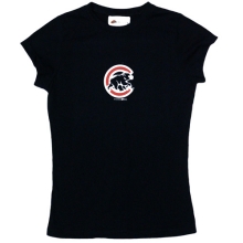 Chicago Cubs Women's Screen Bling Logo T-shirt by Soft as a Grape
