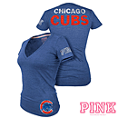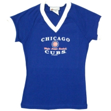 Chicago Cubs Ladies V-Neck Swarovski Ringer T-Shirt