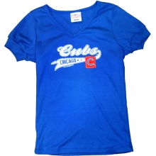 Chicago Cubs Ladies Shirt - Blue Script Ringer