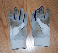 Pair of game used batting gloves. Items acquired via Randy Wells in person on 9/29/09.