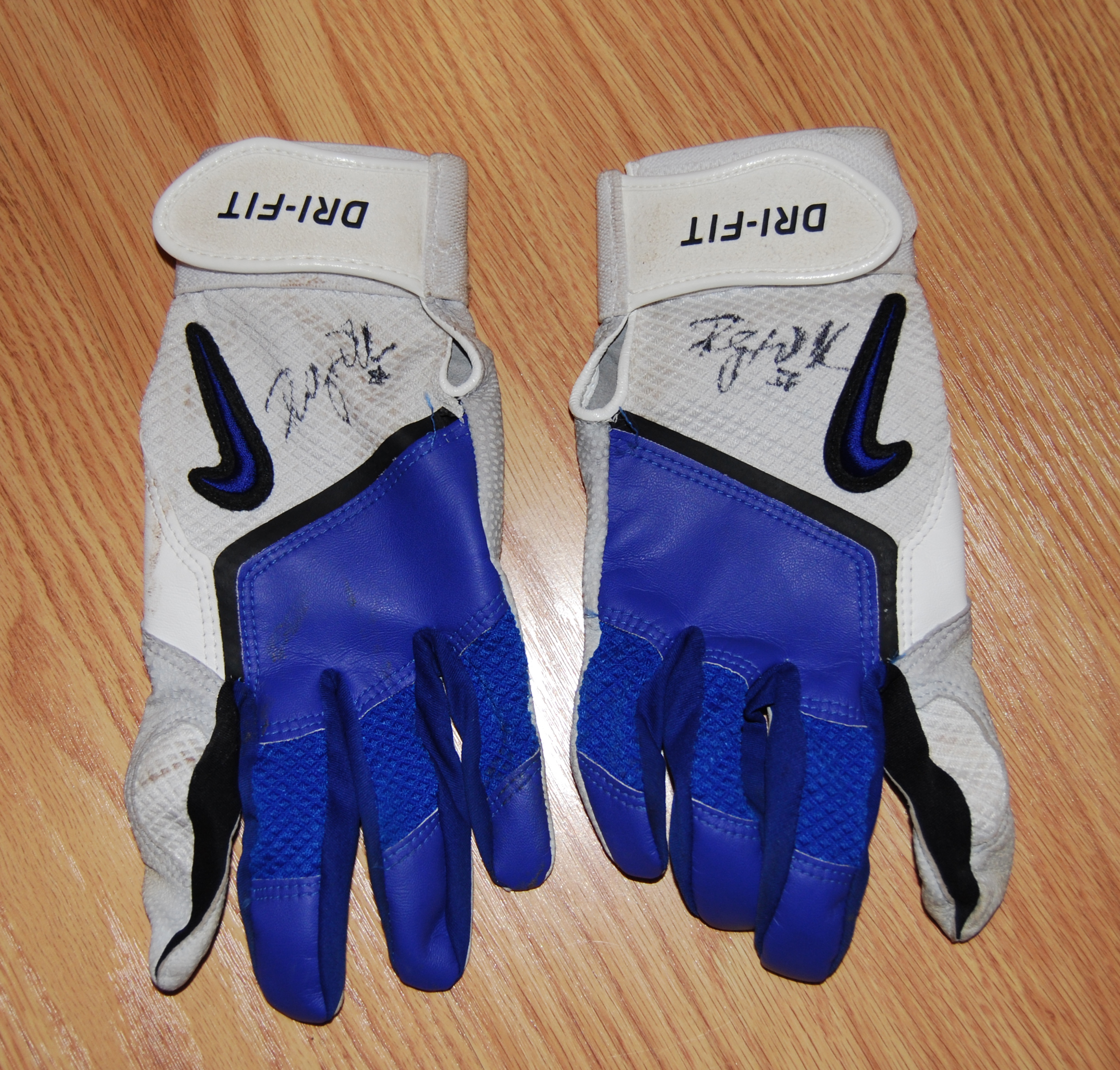 Pair of Sam Fuld autographed batting gloves with 9/15/09 written on back of gloves. Item acquired directly from Sam Fuld.